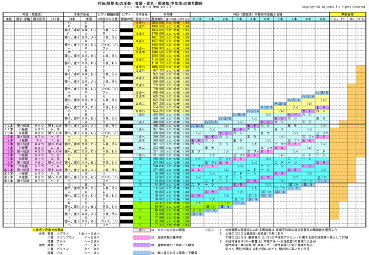 吟詠本数別の音階と音域